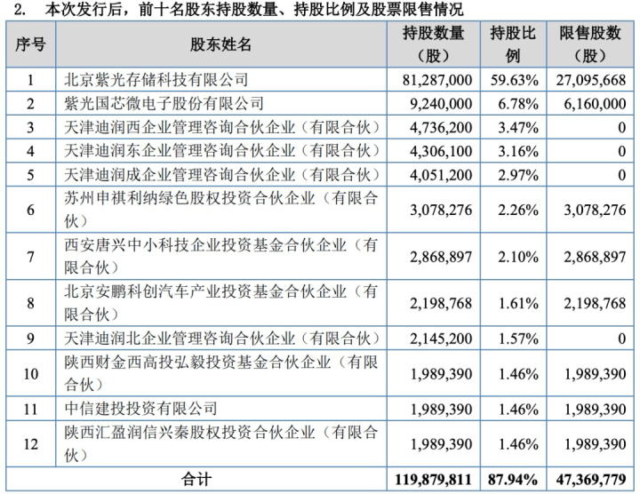 股权结构方面,北京紫光存储科技有限公司持有公司8128.70万股股份,持股比例为59.63%,为公司控股股东。北京紫光存储科技有限公司为新紫光集团有限公司100%子公司。